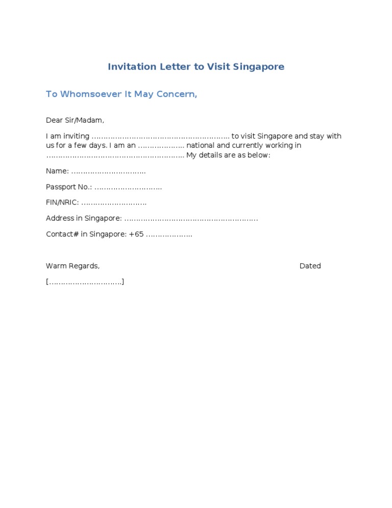 Sample Invitations Letter Going To Singapore